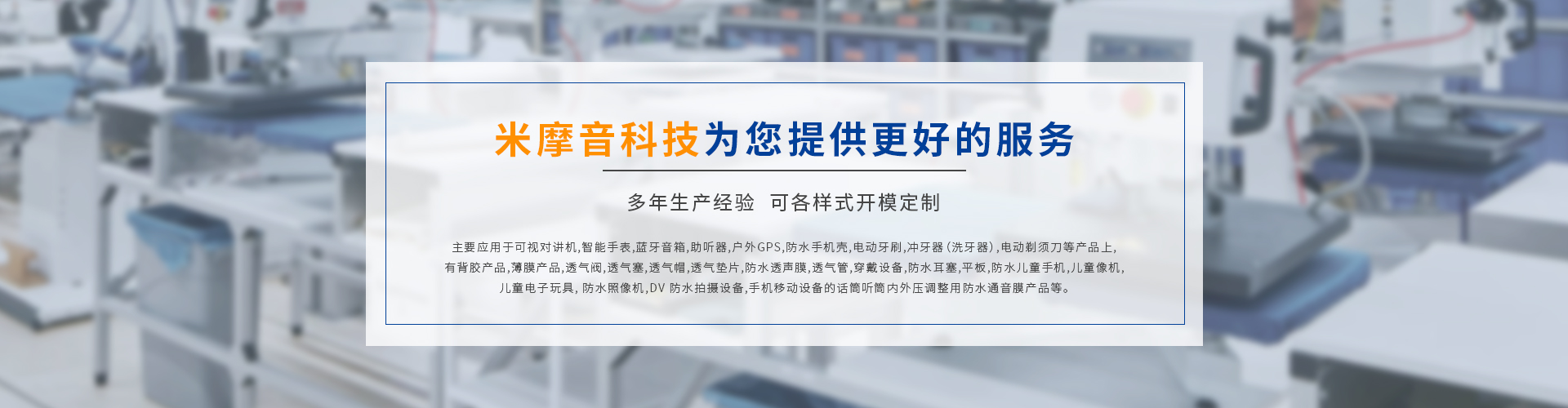 2024-09-16深圳市米摩音科技有限公司簡介深圳市米摩音科技有限公司簡介 深圳市米摩音科技有限公司是一個(gè)專業(yè)聲學(xué)防水膜,防水透氣膜,防水透聲膜,防水通音膜方案供應(yīng)商,專注于聲學(xué)的研究和推廣以及相關(guān)產(chǎn)品的研發(fā)...2024-09-13米摩音揚(yáng)聲器和蜂鳴器喇叭防水...米摩音喇叭防水透聲膜的應(yīng)用與優(yōu)勢在現(xiàn)代電子設(shè)備中,揚(yáng)聲器和蜂鳴器的可靠性和耐用性直接影響設(shè)備的使用體驗(yàn)。為了提高這些音頻設(shè)備的性能并確保其在各種環(huán)境條件下的穩(wěn)定運(yùn)行,米摩...2024-08-20三防對(duì)講機(jī)米摩音MIC防水透聲膜...三防對(duì)講機(jī)中的米摩音MIC防水透聲膜是確保設(shè)備在各種惡劣環(huán)境下可靠工作的關(guān)鍵組件。以下是關(guān)于這種防水透聲膜的詳細(xì)說明:### 1. 防水透聲膜的功能與作用- 防水性能:防水透聲膜...